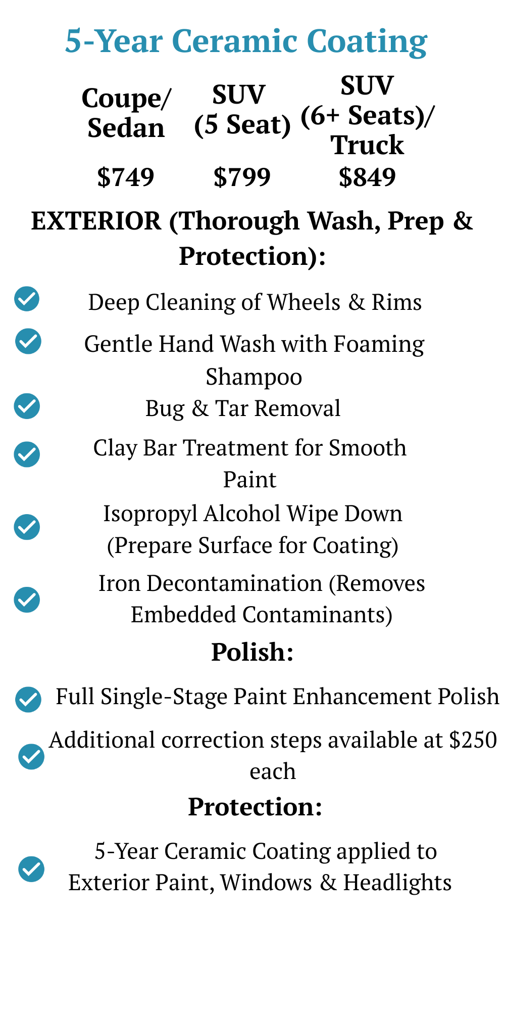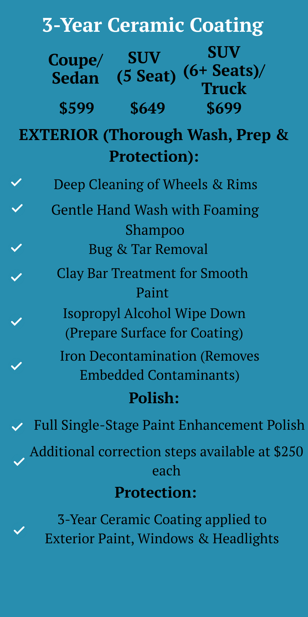 CERAMIC COATING STARTING PRICES